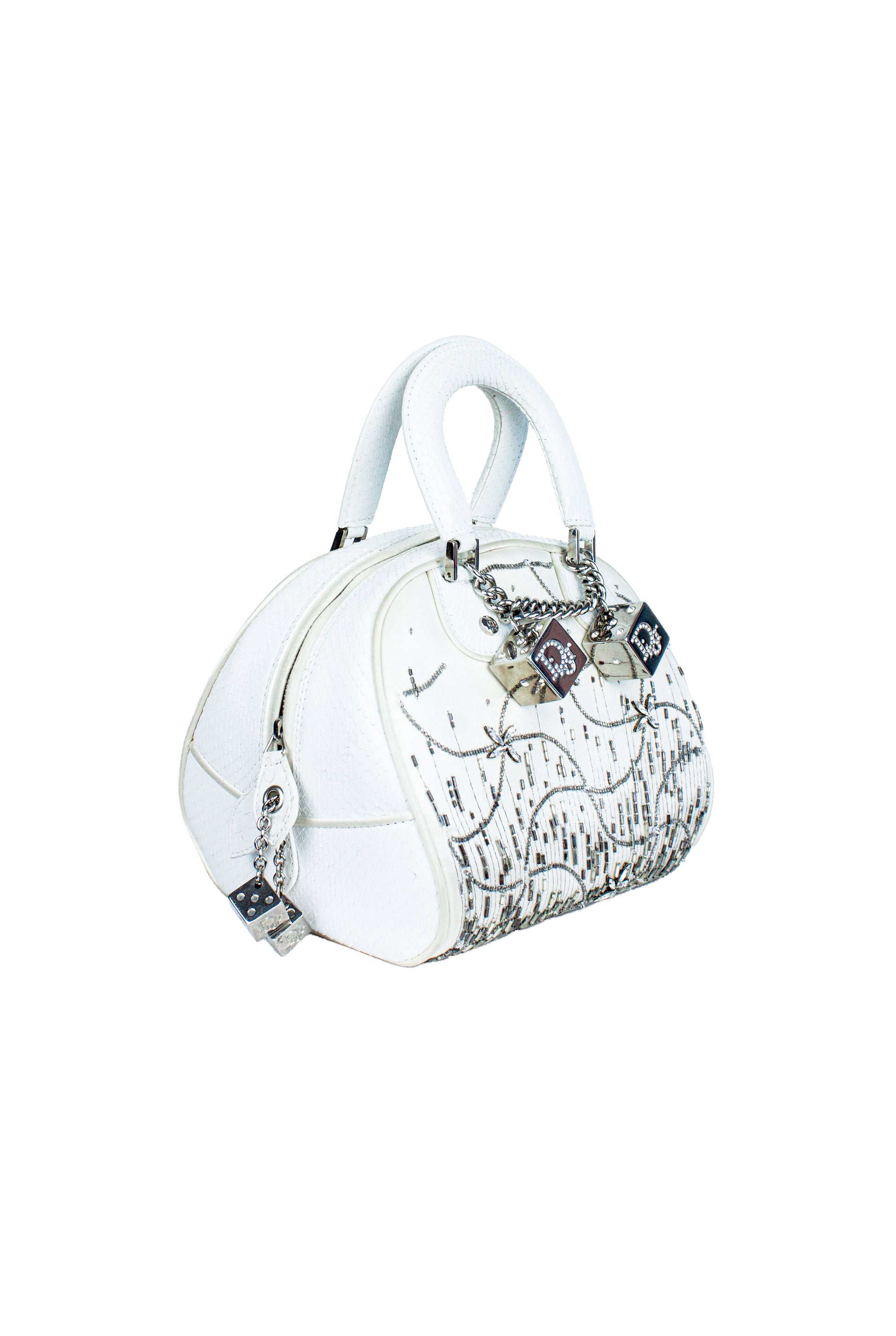 Dior limited edition embodery silk and python dice bag
