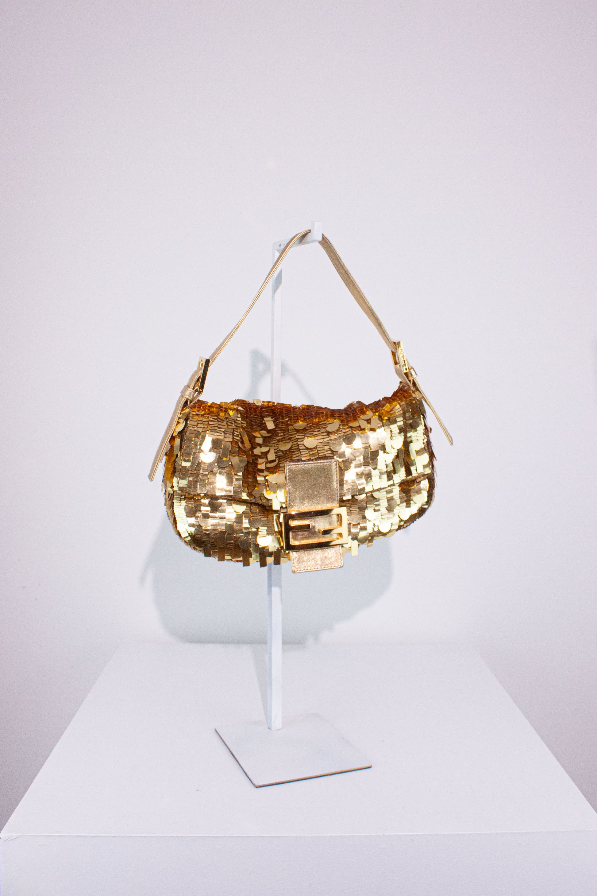 In good vintage condition, please aware the gold leather is a bit worn, comes with extra sequins
