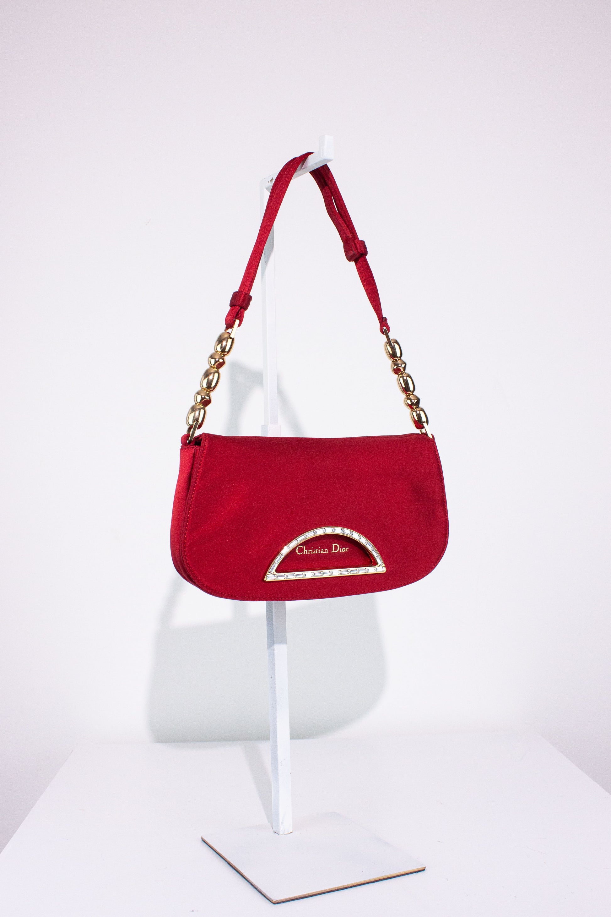 Dior by Galliano Malice red Satin Rhinestone Shoulder Bag